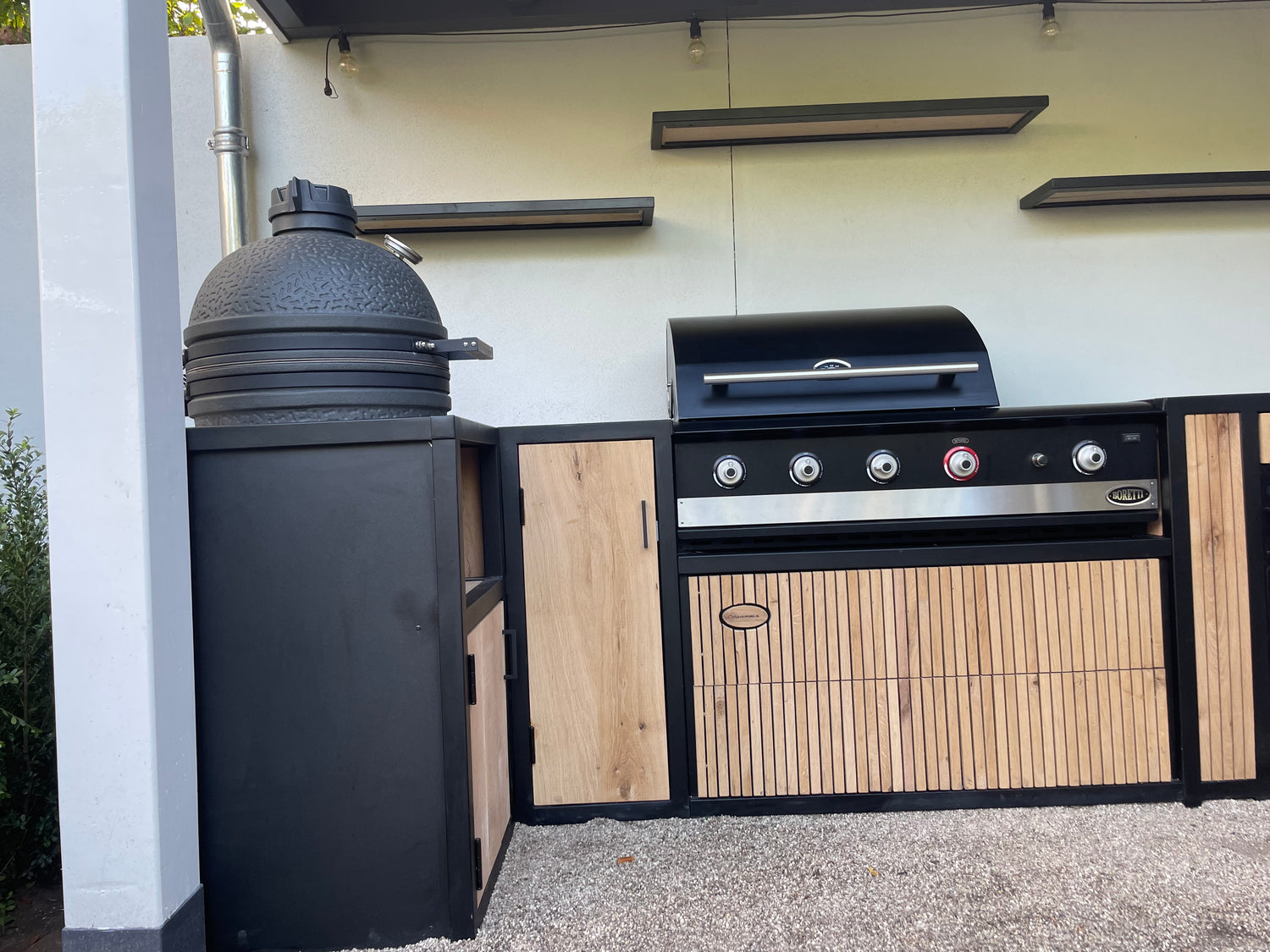Met SteelWood Elements heeft u de vrijheid om te kiezen uit verschillende hoogwaardige materialen, zoals diverse houtsoorten en staal. Zo stelt u een duurzame en stijlvolle buitenkeuken samen die bij uw stijl past.